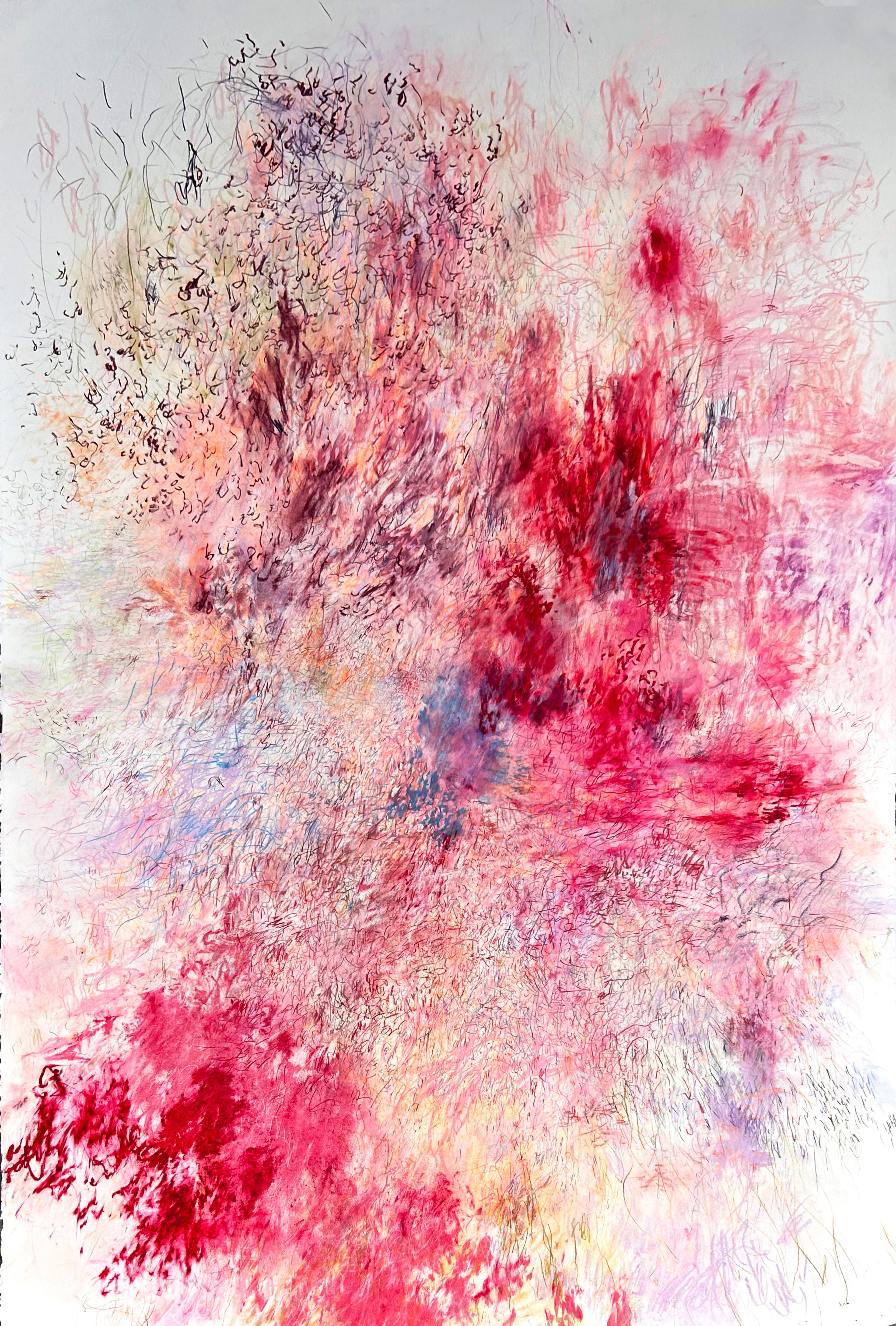 Her work lives in the in-between: between abstraction and representation, between what is seen and what is deeply felt. Every mark is a pulse of presence; nothing is pre-planned. The result is a body of work that invites contemplation, not just consumption.